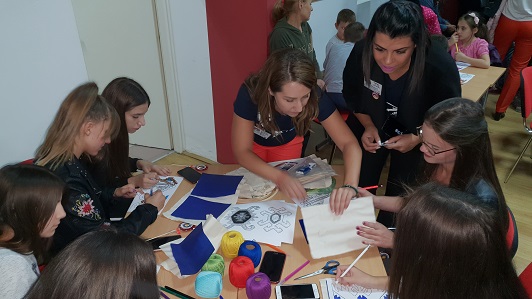 Припремљени мотиви су били спремни за бојење, преношење на платно а затим и вежење. За реализацију ових активности подршку су пружиле професорке Школе за текстил и дизајн из Лесковца, Александра Стефановић и Милена Крстић.