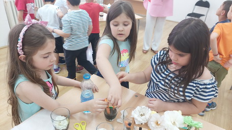 Које су основне боје? Да ли се и како боје мешају? Да ли цвеће пије воду и помоћу чега? Како да направимо дугу у чаши? Како наслагати течност попут кутија или књига?... Ово су само нека од питања која се истраживали и дошли до идејних решења и одговора.