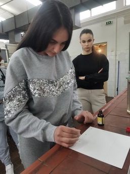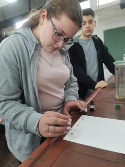 Група ученика осмог разреда је са својим ментором заокружила причу о основама хроматографије. Они су урадили хроматографско раздвајање пигментног екстракта из спанаћа, зачинске паприке и шаргарепе методом ТЛЦ хроматографије, као и хроматографијом на папиру.