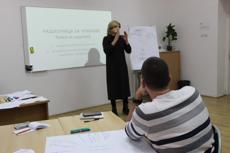 Циљ радионица био је оснаживање компетенција чланова тима за превентивне и интервентне активности у школи, а теме о којима се причало биле су: анализа ризика по безбедност ученика у школи и комуникација са медијима у кризним ситуацијама.