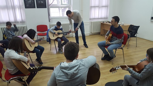 У оквиру Зимске школе у Центру за стручно усавршавање у образовању у Лесковцу у понедељак 11. фебруара одржана је радионица "Мала школа гитаре". Ову радионицу су спровели наставници "Guitar smart" школе гитаре из Лесковца.