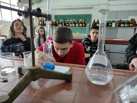 Ученици седмог разреда наставили су тему Раствори где су практично извршили кристализацију неких супстанци и указали на њен значај. Такође су говорили о хидролизи и одређивали pH раствора поједених соли помоћу универзалног лакмус папира.